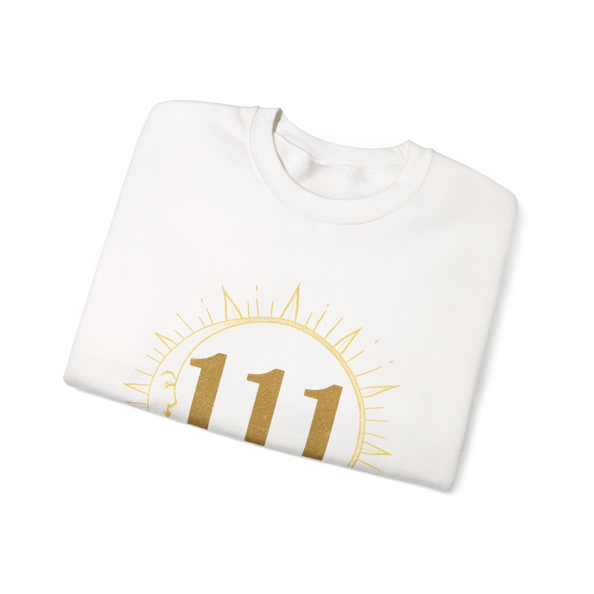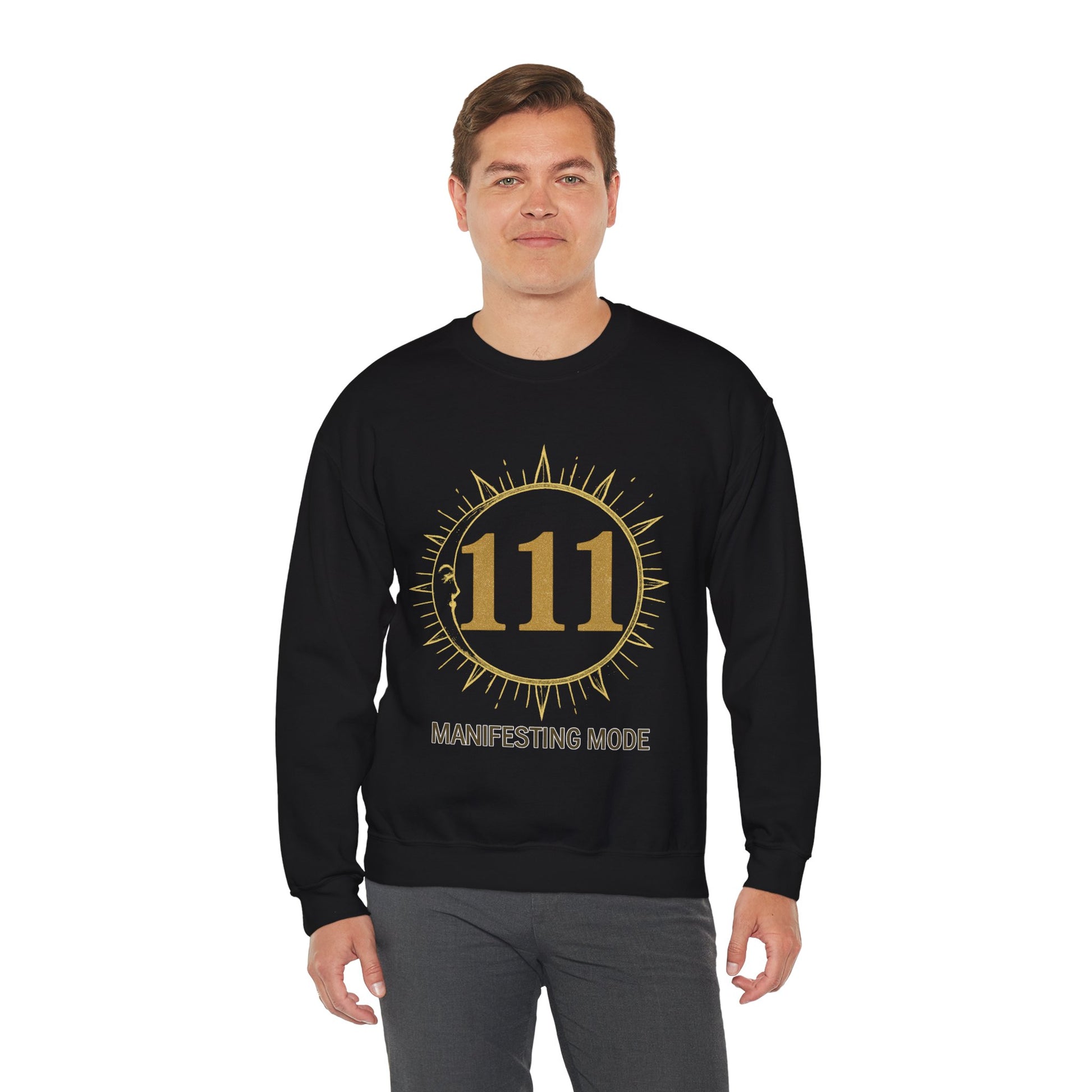 Elevate manifestation with our 111 sweatshirt. Designed for comfort and empowerment, this white crewneck features a gold "111" and "MANIFESTING MODE" to keep you focused. The cozy cotton-poly blend and reinforced stitching make it perfect for daily wear. Unlock your goals with our 111 sweatshirt.