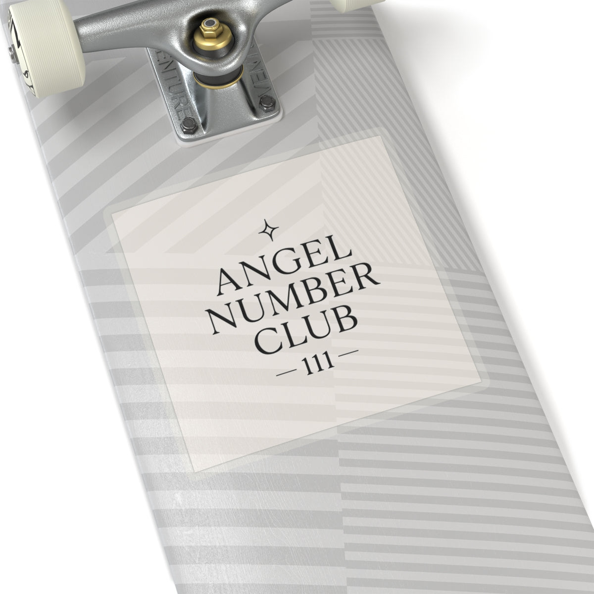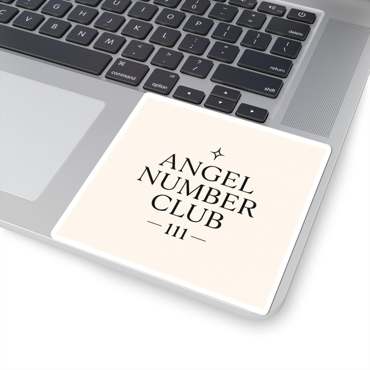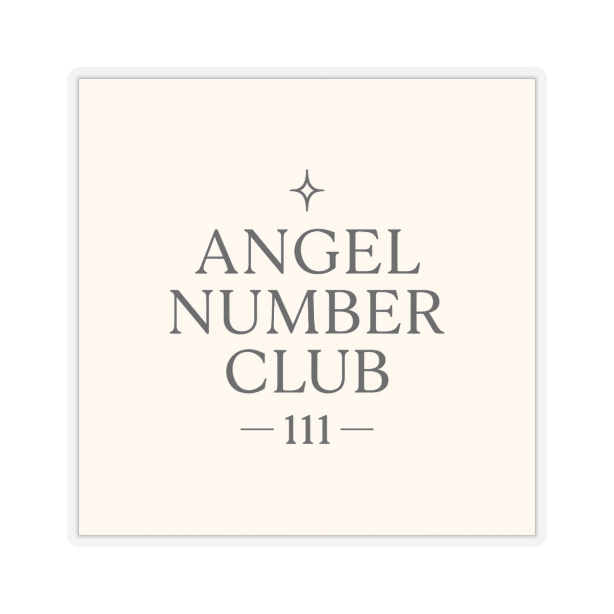 A delicate, glossy vinyl sticker celebrating quiet synchronicity. Muted cream background and soft gray typography spell out “ANGEL NUMBER CLUB — 111 —” with a small star glyph above, creating a calm, minimalist talisman you can place on a laptop, journal, or window. The slim, kiss-cut edge sits neatly against surfaces, and the subtle palette reads like a secret nod to those who notice repeating numbers and small signs. This sticker slips into daily life—on a planner, near a workspace, or inside a notebook—so the small, steady reminder of alignment is always within sight.